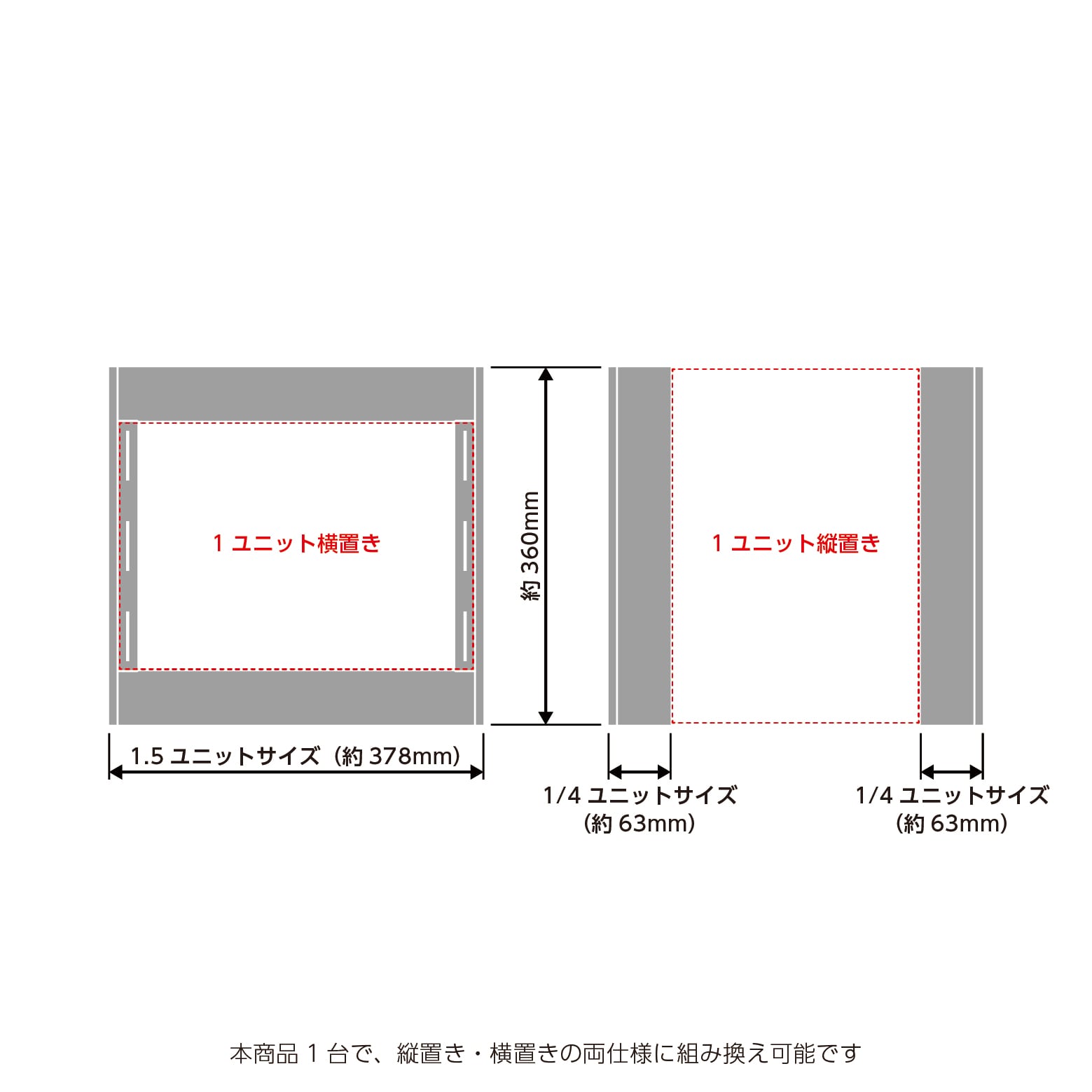 (横向き使用時は1.5ユニット分のサイズになります)