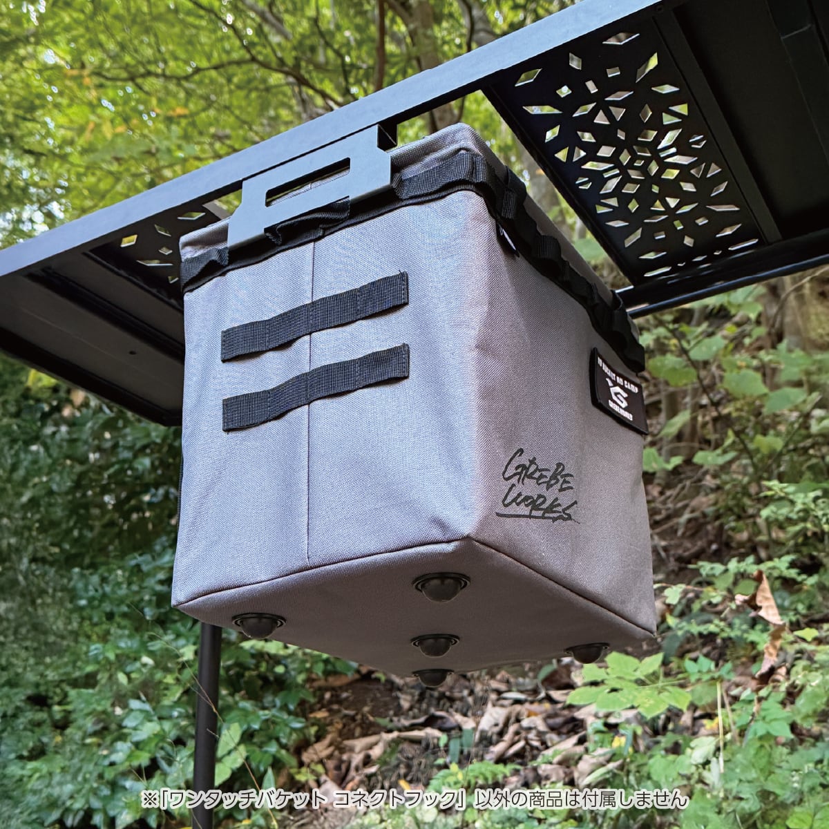 ワンタッチバケット本体のサイドのベルト部分に